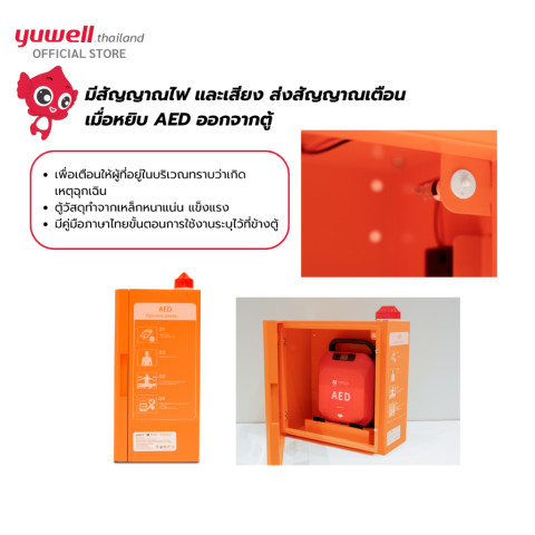 ตู้เก็บเครื่องกระตุกหัวใจอัตโนมัติ AED Yuwell พร้อมสัญญาณไฟและเสียงแจ้งเตือน คืออุปกรณ์สำคัญที่ช่วยให้การเตรียมความพร้อมรับเหตุฉุกเฉินในองค์กรของคุณมีประสิทธิภาพมากขึ้น เพิ่มโอกาสในการช่วยชีวิต และสร้างความมั่นใจให้กับทุกคนในอาคาร