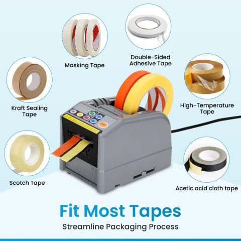 มาพร้อมระบบตัดเทปอัตโนมัติที่รองรับเทปหลากหลายชนิด ทั้งเทปกาวทั่วไป เทป OPP เทปสองหน้า เทปไฟเบอร์ ฟิล์มป้องกัน เทปฉนวน วัสดุฟอยล์ และอีกมากมาย ช่วยเพิ่มประสิทธิภาพการทำงาน ลดของเสีย และให้ความยาวเทปที่เที่ยงตรงทุกครั้ง