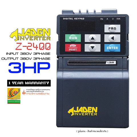 อินเวอร์เตอร์ JADEN รุ่น Z2400 Series เป็นรุ่นประหยัด ขนาดกะทัดรัด แต่ครบด้วยฟังก์ชันสำคัญในการควบคุมความเร็วรอบมอเตอร์ ใช้งานง่าย รองรับการต่ออุปกรณ์ควบคุมภายนอกได้หลากหลาย พร้อมมาตรฐานประหยัดพลังงานเบอร์ 5 จากกรมพัฒนาพลังงานทดแทนและอนุรักษ์พลังงาน ช่วยลดค่าไฟและยืดอายุการใช้งานของมอเตอร์ได้อย่างมีประสิทธิภาพ