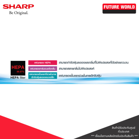 มาพร้อมเทคโนโลยี Plasmacluster แบบเข้มข้น ปล่อยประจุบวกและลบสูงสุดถึง 25,000 ไอออน ช่วยยับยั้งเชื้อโรค เชื้อรา แบคทีเรีย รวมถึงเชื้อไข้หวัดในอากาศ สลายกลิ่นอับชื้น และลดสารก่อภูมิแพ้จากไรฝุ่นได้อย่างมีประสิทธิภาพ พร้อมแผ่นกรอง HEPA คุณภาพสูง ที่ดักจับฝุ่นละอองขนาดเล็กได้ถึง 0.3 ไมครอน 99.97% และรองรับฝุ่น PM2.5 ได้เป็นอย่างดี