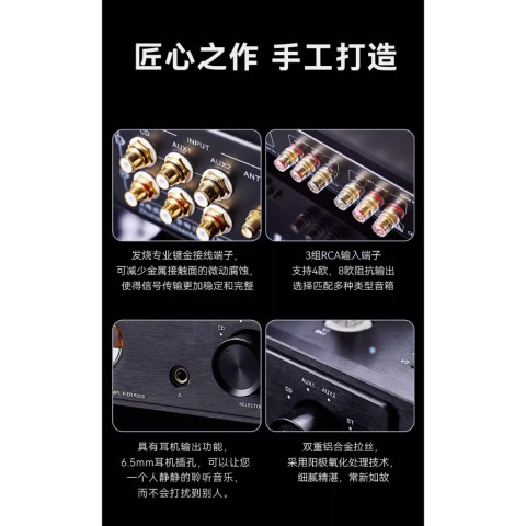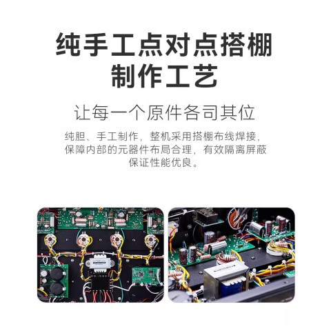 ตัวเครื่องผลิตด้วยงานแฮนด์เมดเต็มรูปแบบ ใช้โครงสร้างเดินสายแบบ Point-to-Point และวัสดุเกรดออดิโอไฟล์ ตั้งแต่หม้อแปลงเอาต์พุตแบบความถี่กว้าง (Wide Frequency) ไปจนถึงสายสัญญาณชุบเงินหนา ให้การถ่ายทอดรายละเอียดเสียงที่แม่นยำ มีมิติ และทรงพลัง เหมาะทั้งสำหรับเพลงบิ๊กแบนด์ แจ๊ส ออเคสตร้า หรือเพลงที่ต้องการไดนามิกจัดเต็ม