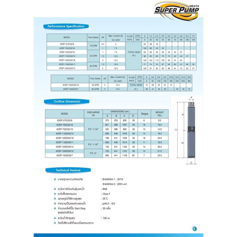 - รายละเอียดรุ่น 4DSP-1505O40/14 (บ่อ 4 นิ้ว – 1.5 แรง – 14 ใบพัด)