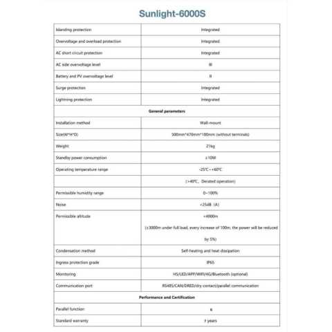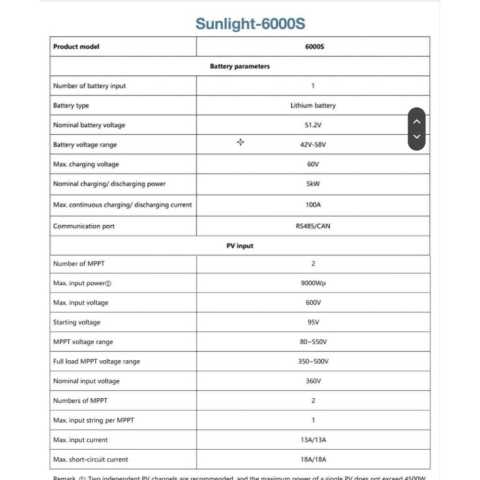 SOLAR ENERGY SUNLIGHT-6000S LOW-VOLTAGE HYBRID INVERTER 6KW อินเวอร์เตอร์ไฮบริด ประกัน 10 ปี