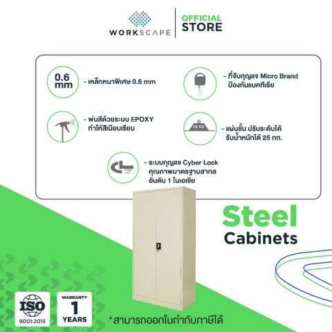 เหล็กหนาพิเศษ 0.6 มม. พ่นสี Powder Coating ช่วยให้ผิวสวยและทนทานต่อการใช้งานทั่วไป