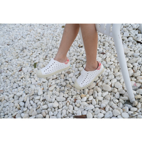 Native รองเท้ากันน้ำเด็กเล็ก EVA รุ่น Jefferson Block Shell White/Bone White/Popsicle Palm Block ราคา 2,152.00 บาท มาพร้อมดีไซน์คลาสสิกซึ่งเป็นรุ่นซิกเนเจอร์ของ Native ใส่ลุยได้ทุกวันทั้งวันฝนตกและวันไปเที่ยว สนุกได้เต็มที่ด้วยรองเท้าที่ทั้งเบา ยืดหยุ่น และดูแลรักษาง่าย เหมาะสำหรับเด็กเล็กที่ต้องการความคล่องตัวในทุกกิจกรรม